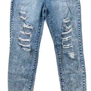 Forever 21 Womens Jeans Size 28 Blue Light Wash Distressed Ripped Metal Accents.