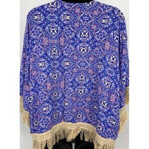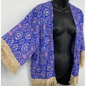Forever 21 Womens Kimono Cover Up Size Small S Blue Fringe Boho Casual NWT New
