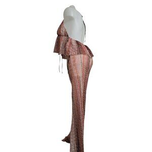 Title: Forever 21 Women’s Lace Sheer Halter Jumpsuit Pink Brown Boho Festival Lounge Size L