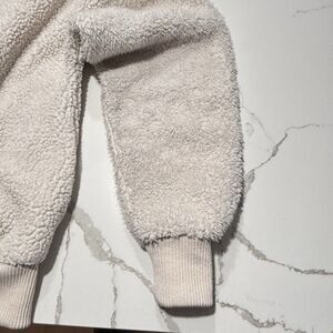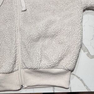 Forever 21 Women's Large Cream White Sherpa Hooded Jacket Pockets Full Zip SZ S