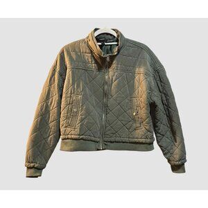 Forever 21 Women’s Large Green Quilted Bomber Jacket Cropped Army Zip Pockets