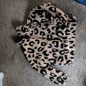 Forever 21 Womens Leopard Sherpa Fleece Sweatshirt Lined Collared Ful