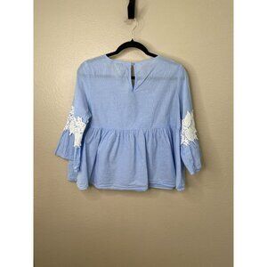 Forever 21 Womens Light Blue Bell Sleeve Lace Trim Top Size Small 100% Cotton