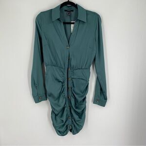 Forever 21 Women’s Long Sleeve Button Front Ruched Mini Satin Dress size M
