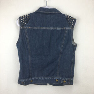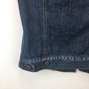 Forever 21 Womens Blue Denim Silver Bead Cut Off Jean Cropped Jacket Size Medium