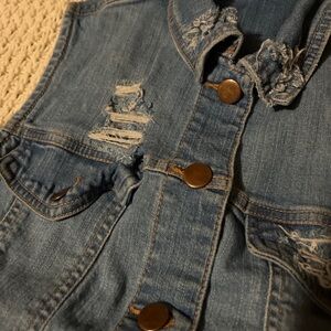 Forever 21 Womens M Blue Denim Vest Button Up Pockets Distressed Raw Hem