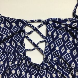 Forever 21 Size Medium Braided Spaghetti Strap Strappy Side Panel Blue & White Geo Print Dress