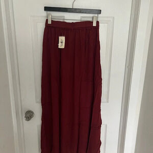 Forever 21 Women's Maxi Long Skirt Red Wine Bow On Front Buttoned Sz M NWT