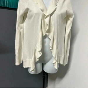This is a pretty ivory in color lightweight ruffle waterfall forever 21 open front cardigan. Perfect for layering for the upcoming cooler weather.