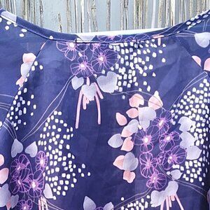 Forever 21 Women's Navy Floral Blouse with Peekaboo Shoulders - S/P
