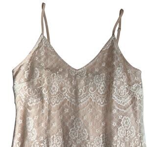 Forever 21 Womens Nude Lace Dress Size XS White Lace Overlay Slip Dress V-Neck