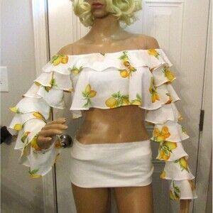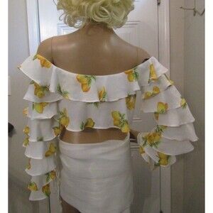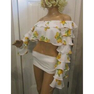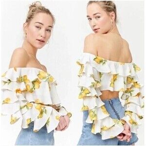 Description: Forever 21 Womens Off Shoulder Lemons Ruffle Crop Top Blouse Size S