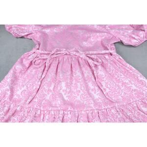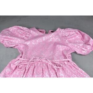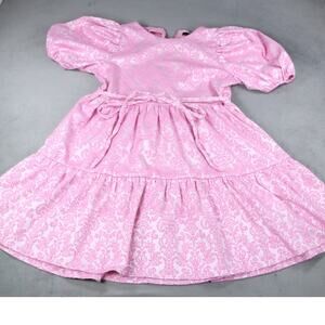 Forever 21 Women’s Pink Puff Sleeve Jacquard Mini Dress Fit & Flare Bow Waist M