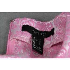 Chic and feminine Forever 21 pink jacquard mini dress featuring elegant puff sleeves and a fit & flare silhouette.