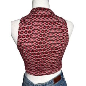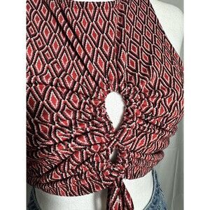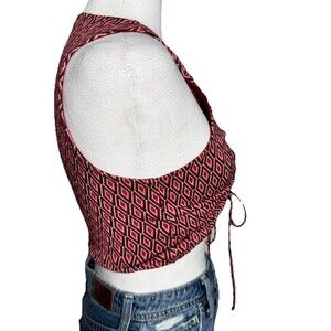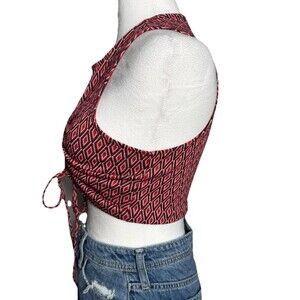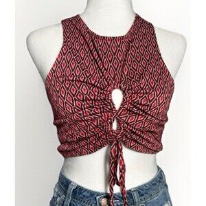 Forever 21 Women’s Red Keyhole Cropped Sleeveless Top Size S Retro Ruching Tie
