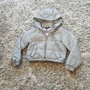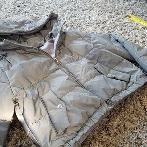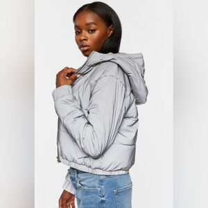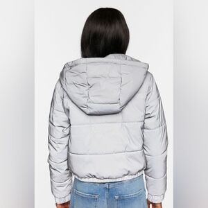 Forever 21 Women's Reflective Hooded Puffer Jacket Silver Size Small