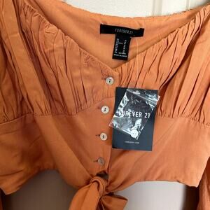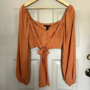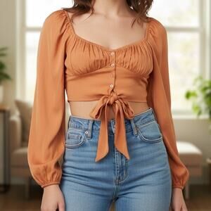 Forever 21 Women´s Rust Orange Long Sleeve Tie Front Boho Crop Top Size M