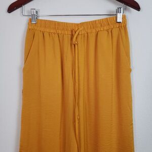 Forever 21 Women's Satin Wide Leg Pants Small Gold Pull On Flowy Lightweight