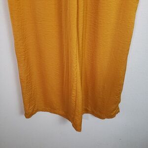 Forever 21 women's pants - pull on, elastic waistband, slant pockets, wide leg, textured satin fabric, flowy and lightweight. Gold.