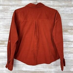 Forever 21 Women's Shirt Top Medium Cropped Corduroy Rustic Orange Long Sleeves