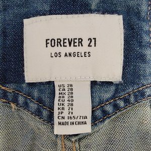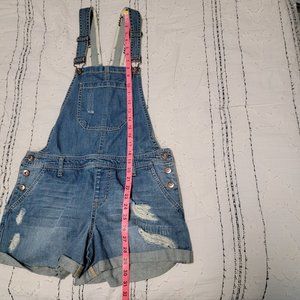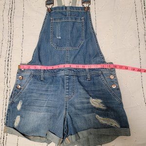 Forever 21 Womens Size 28 Denim Overall Shorts Distressed Destroyed Med Blue