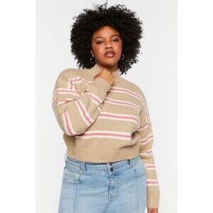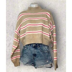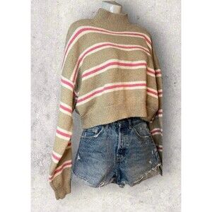 Forever 21 Women’s Size Large Mock Neck Pullover Cropped Boyfriend Sweater Tan