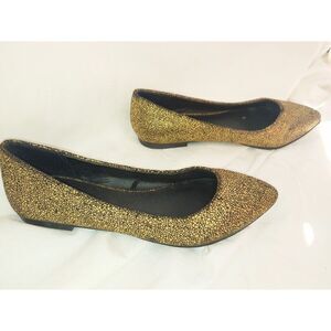 Forever 21 Women's Size 7 Gold/Black Cracked-look Flat Shoes