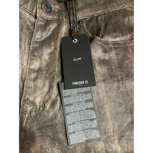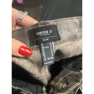 Forever 21 women’s slim fit jeans in a striking brown metallic distressed wash.