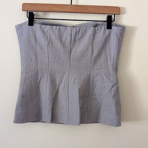 Forever 21 Womens Small Button Up Strapless Top Blouse Gray Preppy Office Casual