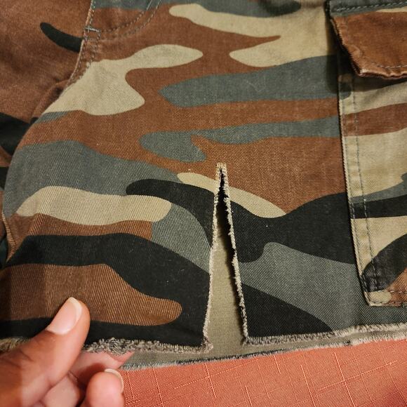 Forever 21 Women's Small Green Camo Shorts W/ Split Button Fly Cut Off Army