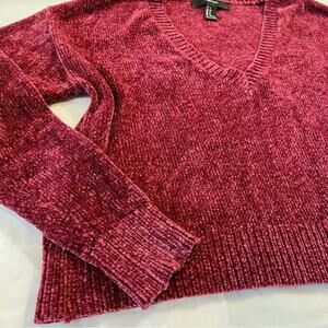 Forever 21 Women's Small Red V-Neck Long Sleeve Sweater Cropped