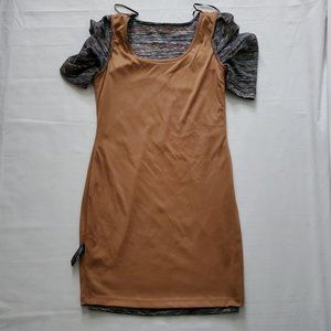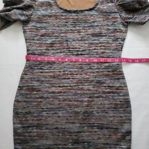 Forever 21 Women’s Square Neck Striped Puff Sleeve Bodycon Knit Dress Medium