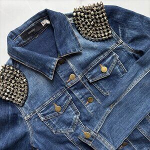 Forever 21 Women’s Studded Blue Denim Trucker Style Jacket Small Rockstar Y2K