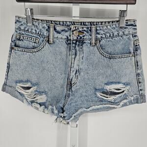 Forever 21 Womens Sz 28 Acid Wash Blue Jean Cutoff Denim Shorts Distressed