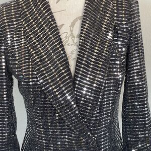 Forever 21 Womens Sz Small Blazer Jacket Dress Tuxedo Sequin Retro Party Holiday Disco Metallic Retro Funky Festival New Year's Eve, Edgy, Glam, Glamcore, Baddie, Club, Disco, Y2K,