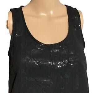Forever 21 Womens Tank Top Sheer Over Silver Sequins Sleeveless Black Small