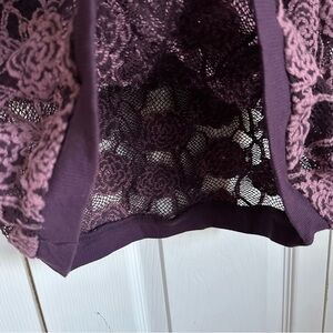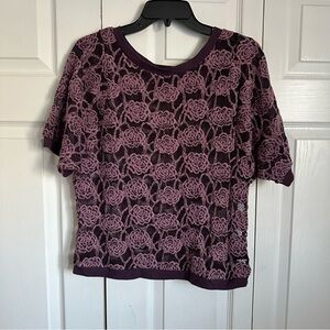 Forever 21 Womens Boho Crochet Mesh Fishnet Floral Purple Top Batwing Sleeves Size L
