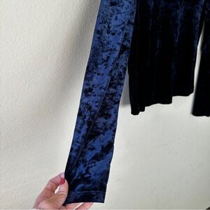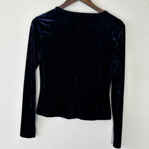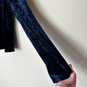 Forever 21 Women's Velvet Navy Blue Long-sleeve Top Size L Round Neck Whimsigoth Y2K inspired