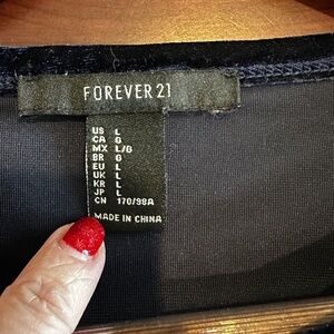 Forever 21 Womens Velvet Navy Blue Long-sleeve Top Size L Round Neck Whimsigoth
