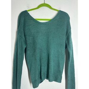 Forever 21 Women’s Bohemian Backless Crewneck Knit Sweater Size M Green