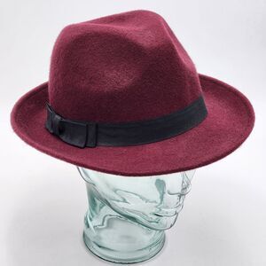 Wool Deep Red Ribbon Bow Band Fedora Hat