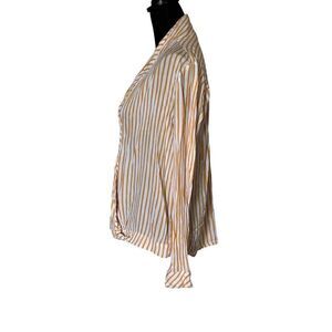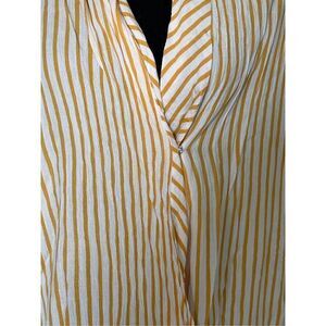 Forever 21 Wrap Front Long Sleeve White & Yellow Stripe Blouse Sz Medium