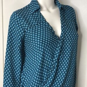Forever 21 Wrap Style Medallion Print Career Top Blouse Shirt Sz S
