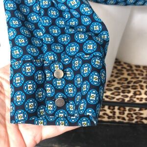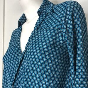 Forever 21 / Love21 Medallion Print Career Wrap Top high low hem Blouse size small . Excellent condition. Great classy shirt for dressing up a pair of black jeans or even for an office business look. Has a pretty loose draped look. Has a snap at chest .