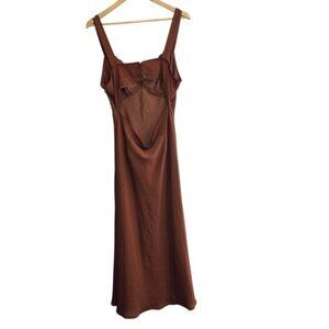 Forever 21 XL Brown Slip Dress Lace Detail Cut-Out Back Sleeveless Y2K Aesthetic
