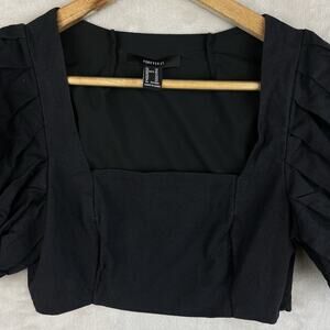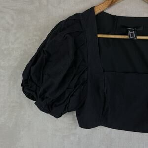 Forever 21 XS Black Babydoll Crop Top Puff Sleeve Elena Gilbert Whimsigoth Lined