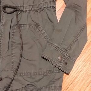 Forever 21 XXI green army jacket Sz M cinch waist/hemline, zipper front pocket, zip-up/snap buttons Gently worn but in good overall condition