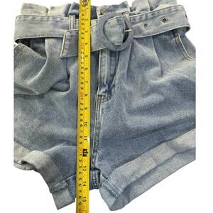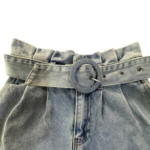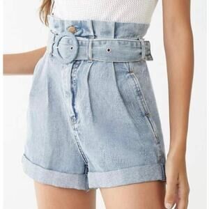 Forever 21 Y2K 90s Size XS High Waisted Belted Paper Bag Denim Jean Shorts