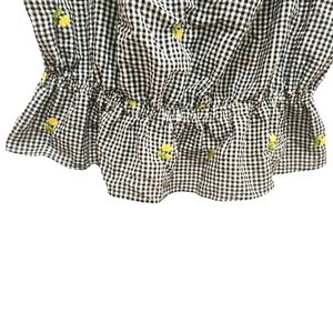 Forever 21 Y2K Black White Gingham Peplum Hem Cropped Top Yellow Floral Plus 2X