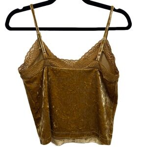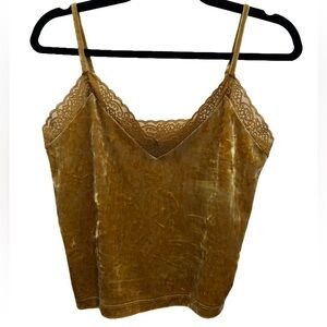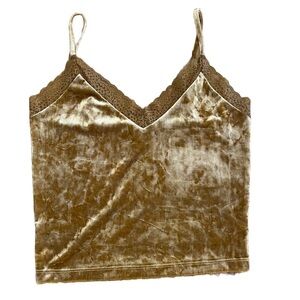 Forever 21 | Y2K Gold Crushed Velvet Lace Trim Cami Tank Top Medium